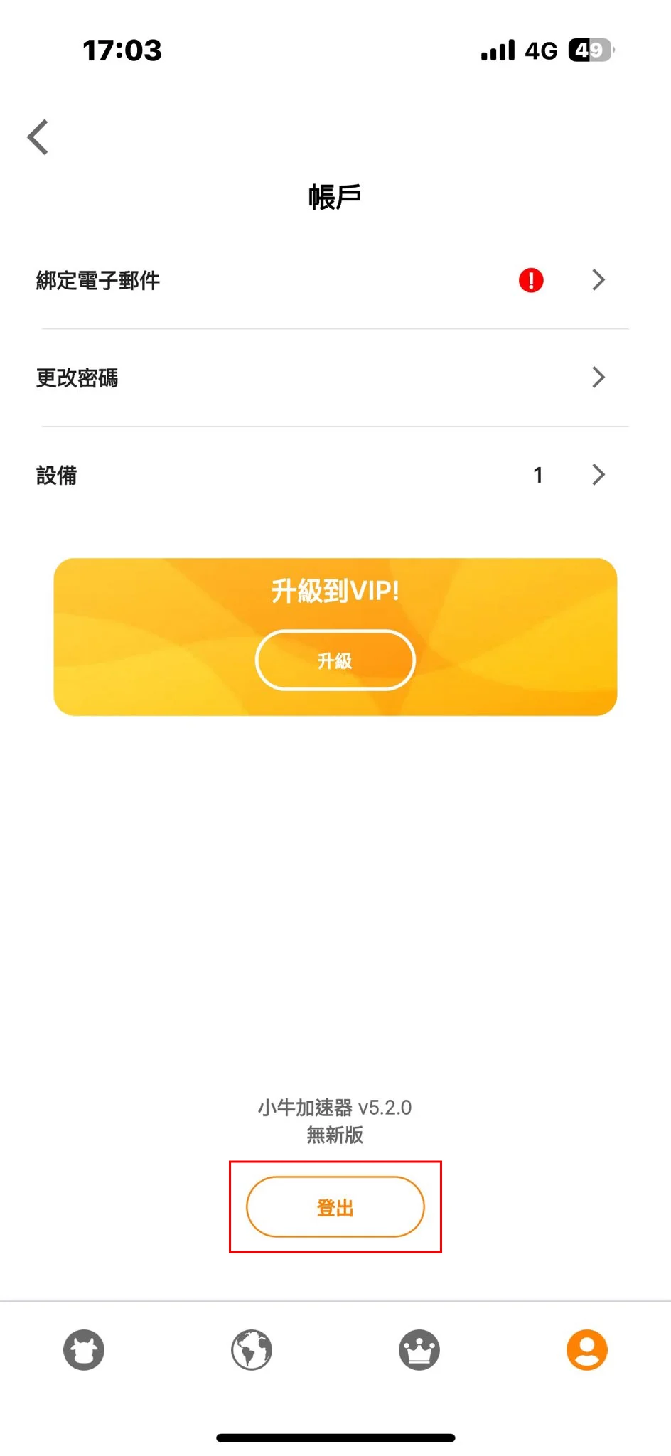 點擊"登出"退出您的裝置。
