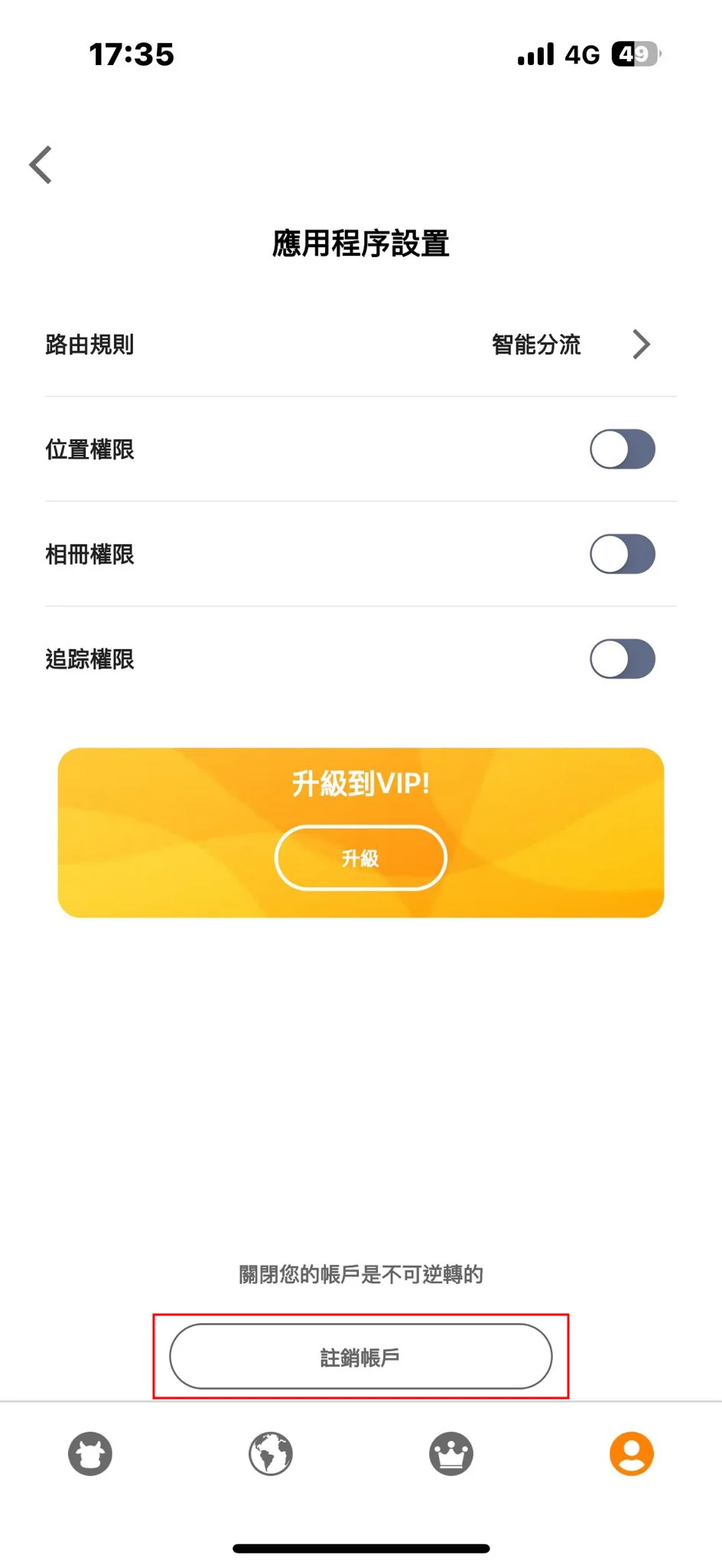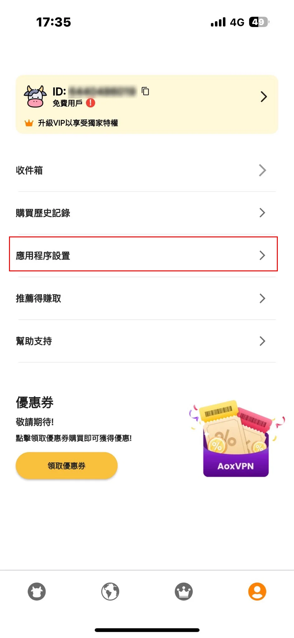在小牛加速器應用程式上,前往帳戶頁面。點選“應用程式設置”。