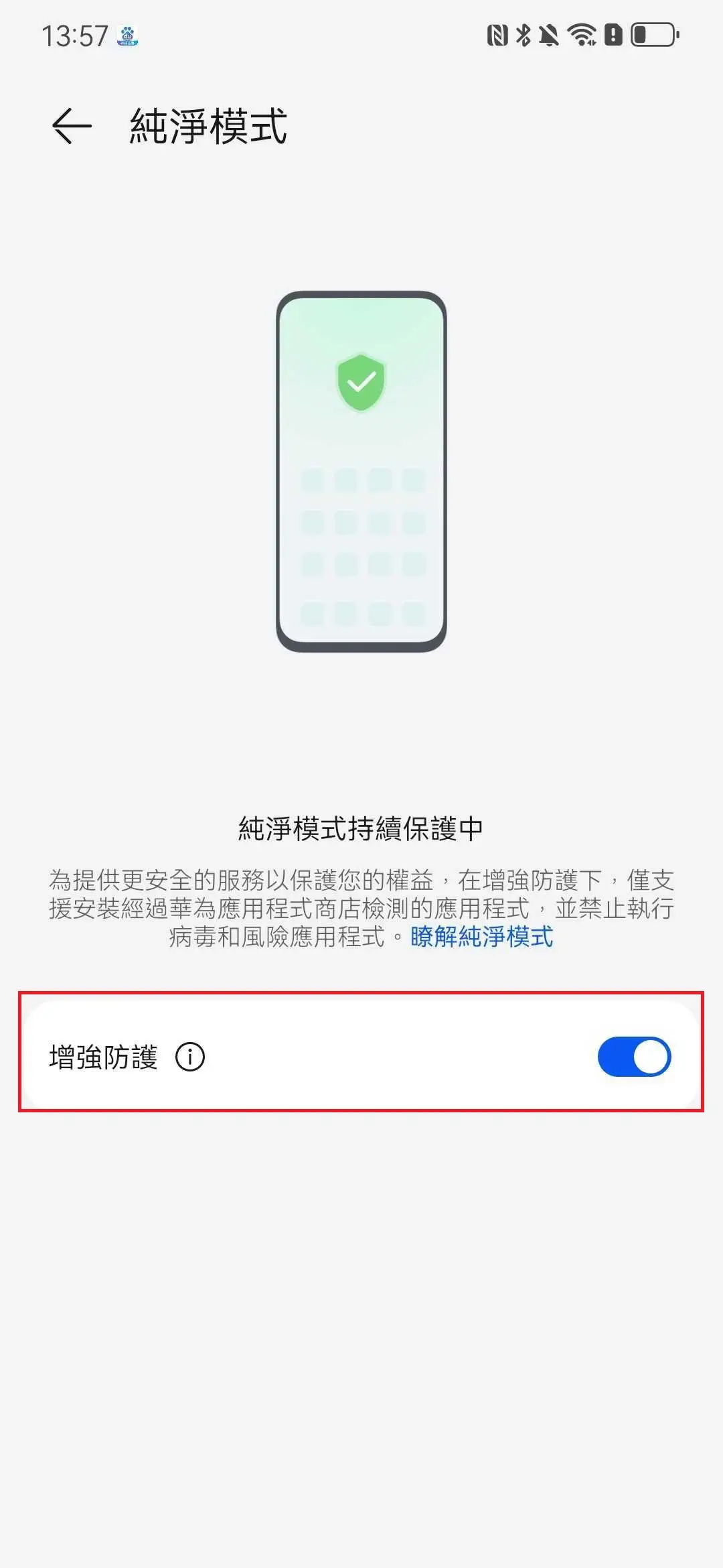 關閉 增強防護 開關。