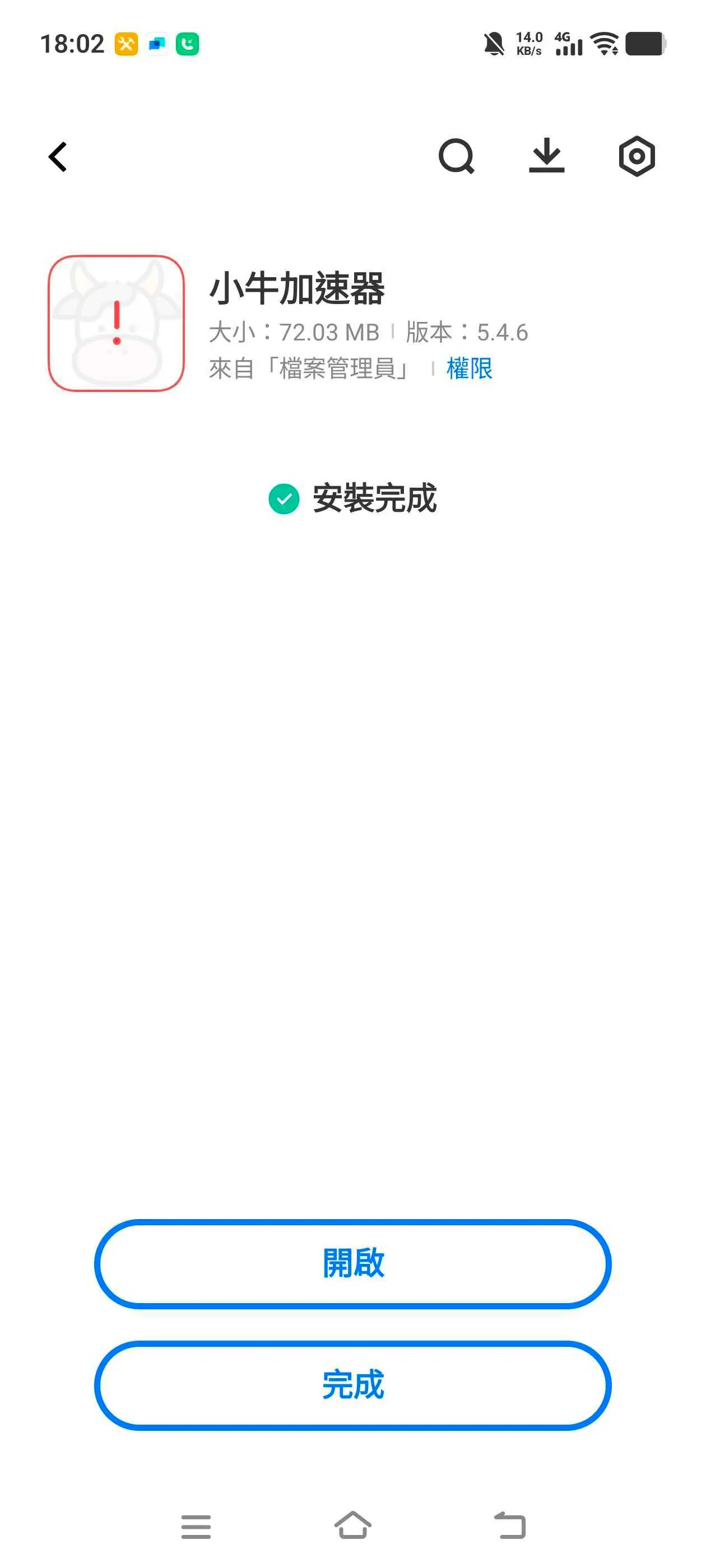 安裝完成。
